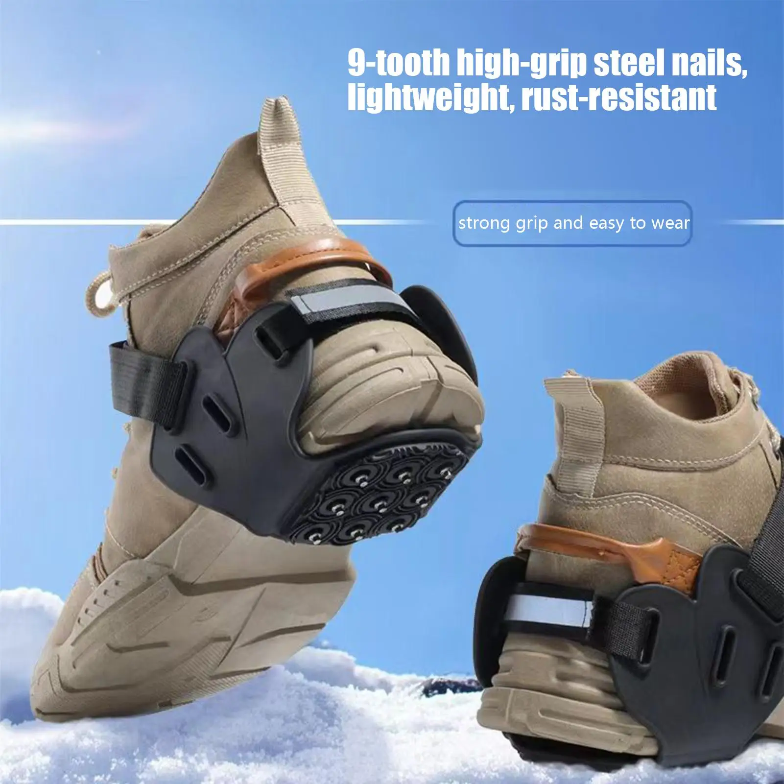 Winter Walking Boots Cleats are made to improve safety and performance in snow-covered and icy conditions. Featuring 9 studs, these anti-slip cleats provide excellent snow traction, making them ideal for walking, hiking, climbing, and various outdoor activities. Whether you are roofing, fishing, or mountaineering, these crampons give reliable grip on slippery surfaces. The sturdy construction keeps long-lasting use while keeping comfort during extended wear. Suitable for winter adventures, these cleats deliver stability and confidence on challenging terrains. Experience better mobility and protection with Winter Walking Boots Cleats for all your cold-weather pursuits.