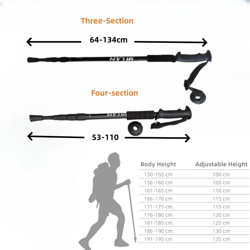 • Length : 3 Section(53-110cm) / 4 Section(64-134cm)